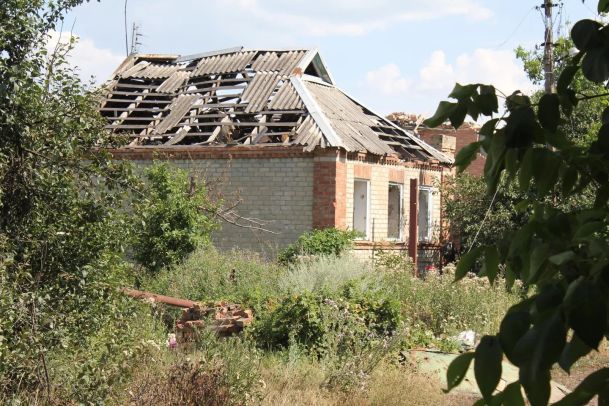 Руки довольно быстро устают, но мы останавливаемся у разрушенного дома.