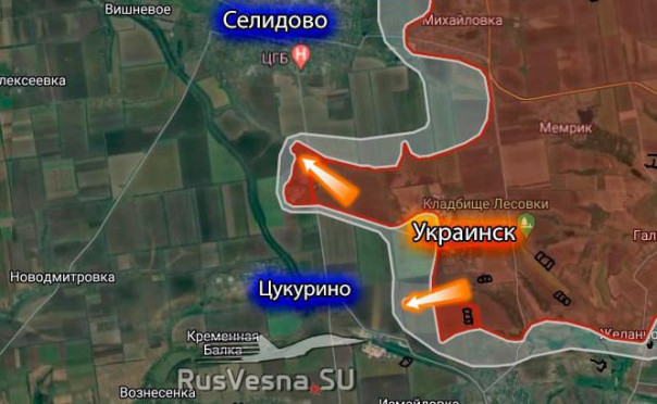 - "Русские пытаются закрепиться на линии железки западнее террикона и давят на север и юг в сторону Цукурино! Понемногу растет угроза по флангам!" - заявил медийный боевик ВСУ с позывным «Мучной».