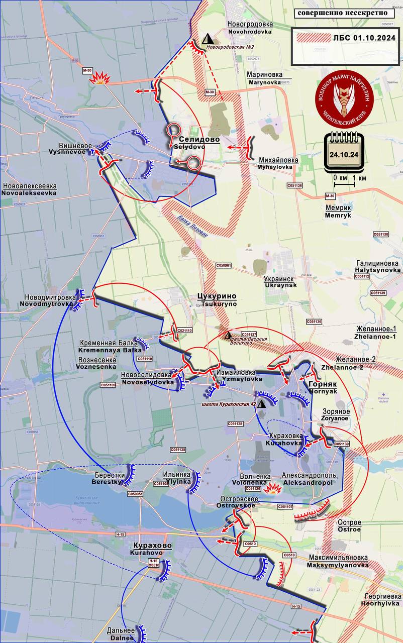 Российские подразделения работают над перерезанием последних путей снабжения и создают угрозу полного окружения. Так, идёт продвижение вдоль трассы М30 к дороге Покровск-Селидово.