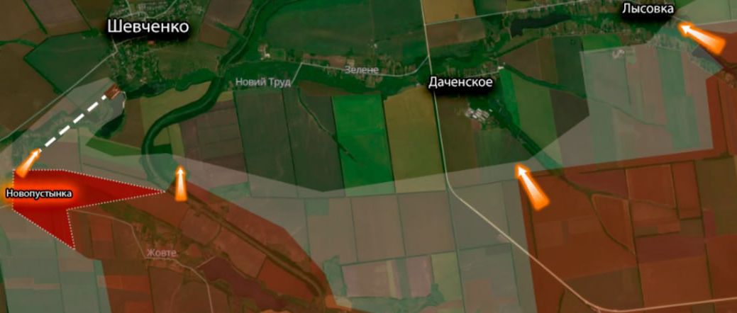 Лысовка-Даченское сейчас на этом участке фронта идут упорные бои, российские войска наступают. Есть продвижения по железной дороге в сторону н.п. Новый Труд.