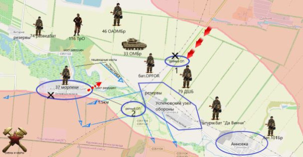 Так же идут бои за ротный ОП №1, который северо-восточнее Успеновки. Цель атак понятна.