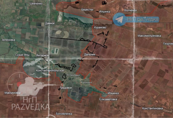 Южнее Новотроицкого российские подразделения расширили контроль, продвинувшись к ранее названной дороге на участке практически до самой Новооленовки, закрепившись у окраины этого населённого пункта. На отдельных участках нашим бойцам удалось продвинуться за дорогу и закрепиться там в лесополосах.
