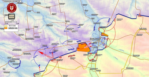 В Курахово боевые действия перемещаются в промзону на западе города. Промзона в его северной части на берегу водохранилища полностью перешла под контроль нашей армии. Идут атаки в направлении Кураховской ТЭС. В её районе уже работают наши передовые группы. Также к району ТЭС наши идут с юга. Продвинувшись от района многоэтажек через парк южнее стадиона, ВС России вышли к гаражному кооперативу возле кураховского кладбища. Закрепившись в нём, российские подразделения создали площадку для накопления сил для дальнейших штурмовых действий в направлении укрепрайона противника.