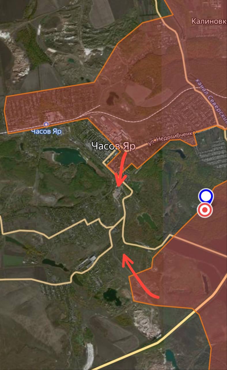 Как сообщают военные паблики, российские войска помимо продвижения в жилой застройке города, продвигаются и с южной стороны, восточнее поселка Ступочки.