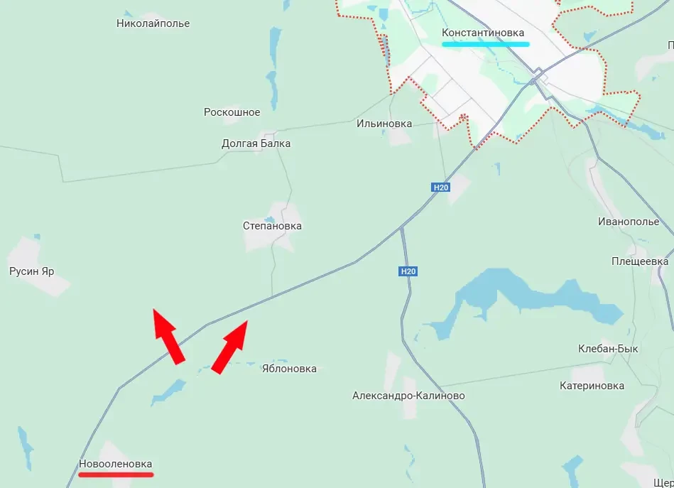Мотострелковые подразделения армии России взяли под контроль ещё несколько квадратных километров дороги Покровск (Красноармейск) – Константиновка, продвинувшись севернее Новоеленовки.