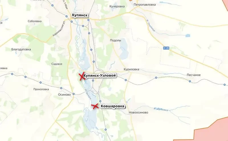 Паромные переправы, наведенные противником через реку Оскол в районах Купянска-Узлового и Ковшаровки, уничтожены ударами российской артиллерии и ВКС. Тем самым враг лишился возможности проводить ротацию своих формирований, а также осуществлять снабжение подразделений ВСУ к востоку от города. Предполагается, что это ослабит линию обороны противника на восточном направлении, позволив нашим войскам приблизиться к Купянску и здесь.