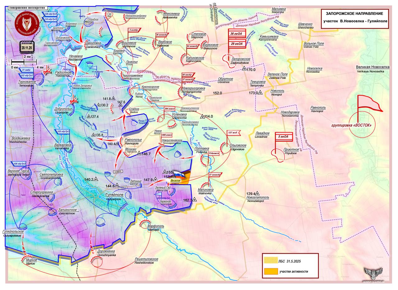 ● Группировка «Восток» продолжает движение в сторону Гуляйполя. Взят населенный пункт Весёлое.