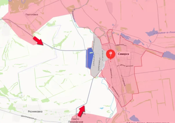 По состоянию на утро 11 декабря 2025 года противник контролирует небольшую часть в западной части Северска. Причём контроль этот в большей степени условный. Бывший гарнизон разбился на части, личный состав которых пытается в буквальном смысле по полям выбраться в сторону Резниковки и Рай-Александровки.