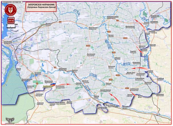 ВС РФ ведут активные действия на обоих флангах Запорожского направления. 11 января был освобожден н.п. Белогорье на правом фланге направления, а 12 января российские подразделения продвинулись от н.п. Лукьяновское на северо-восток и освободили н.п. Новобойковское (47°37′54″ с. ш. 35°28′38″ в. д. - население 34 чел. в 2001 г.).