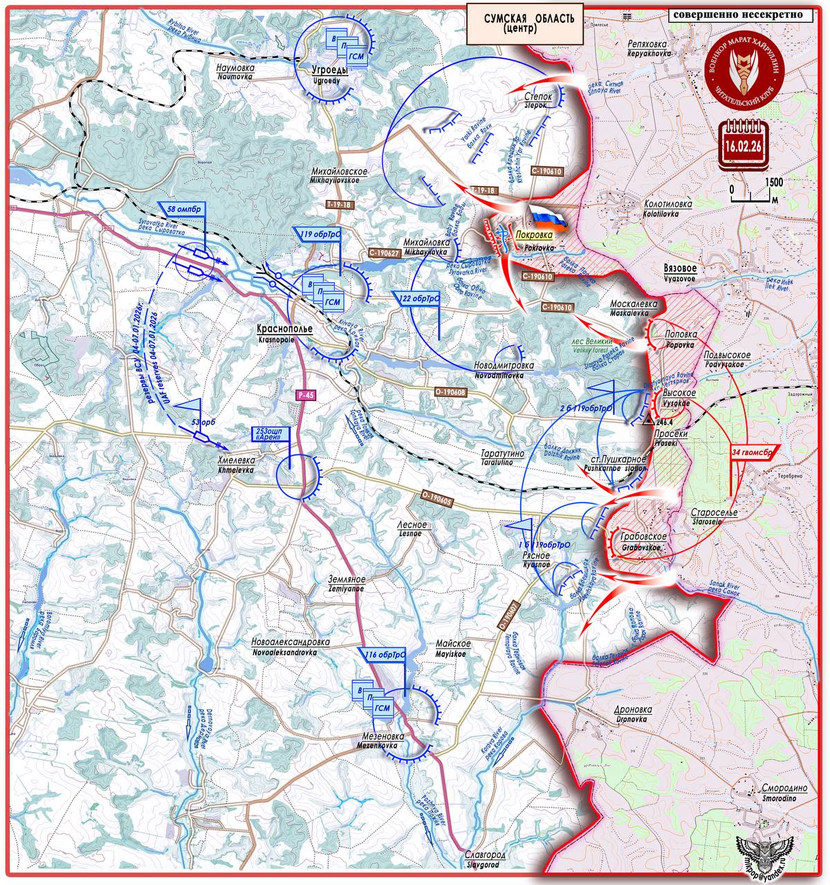 ВС РФ берут под контроль основные дороги на Краснопольском участке Сумского направления. Короткая сводка с фронта 16 февраля 2026 года