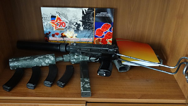 Отдельный шкафчик отведен, как выражается Захарченко, под «сувениры». Например, израильский автомат «Узи». «Его нашли у убитого негра под Мариуполем», — пояснил руководитель ДНР.