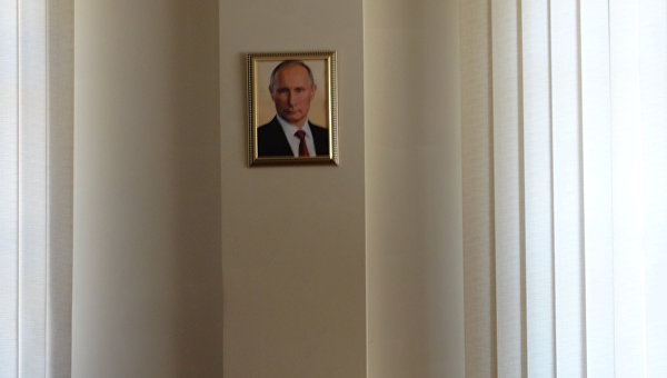 У главы ДНР просторный кабинет на втором этаже в одном из административных зданий по улице Университетской. На одной из стен (та, что справа от его письменного стола) висит портрет Путина.