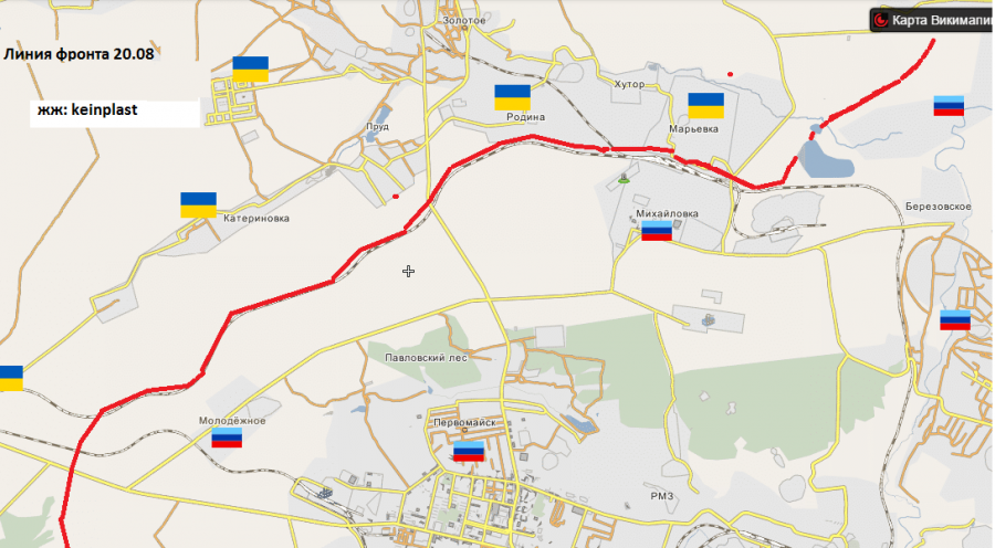 С весны линия разграничения в данном районе расположена вдоль железнодорожных путей.Обе стороны конфликта часто переходят подобную "природную" линию разграничения и проводят свои вылазки.Например,с той же Катериновки вражеские силы доходят вплоть до Павловского леса и таким образом обстреливают из минометов не только окраины Первомайска а и его центр.Хотя этот город получает и более щедрые "подарочки" от ВСУ в виде крупнокалиберных снарядов и ракет.