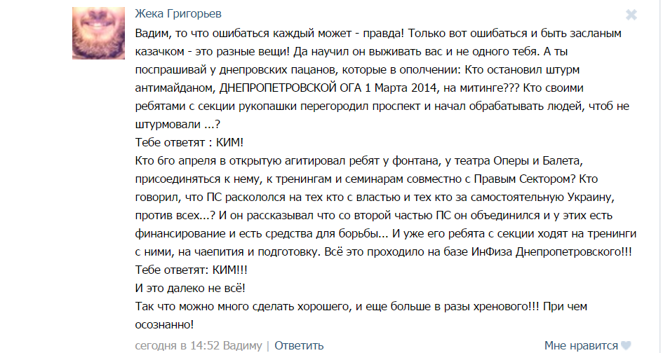 Пользователи социальных сетей из Донецкой Народной Республики бурно обсуждают назначенного 27 января Александром Захарченко главу городской администрации Горловки Станислава Кима. Поводом для обсуждения стал факт в его биографии, подтвержденный видео сюжетами, которыми снимали украинские журналисты на Майдана, новоиспеченный мэр - активист Евромайдана.