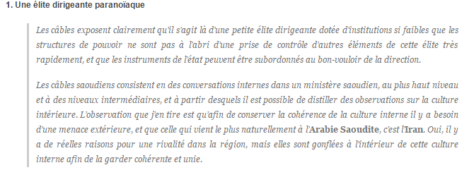 Документ подтверждает, что Ваххабизм-это инструмент именно Саудовской Аравии, как ведущей региональной державы. При этом отмечается, что этот инструмент необходимо использовать по всему миру. Сунниты рассматриваются как материал, который может быть преобразован в Ваххабизм. Источник