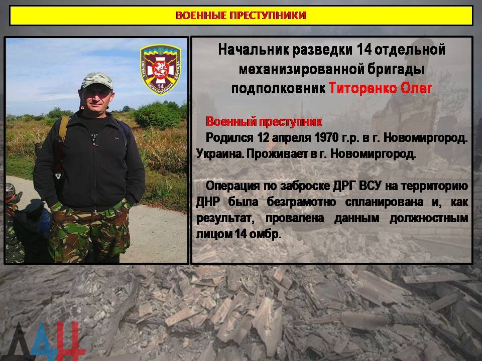 И вот сегодня Минобороны ДНР обнародовало данные о двух украинских офицерах, причастных к этой бойне – это командир батальона 14-й отдельной механизированной бригады подполковник Валерий Дурихин и начальник разведки этого же подразделения подполковник Олеге Титоренко.