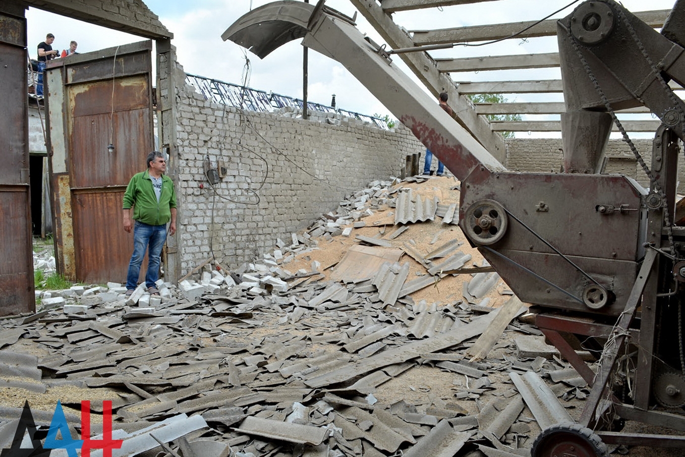 Уничтожен полностью элеватор. Еще один разрушен наполовину. Снарядами повреждены две единицы сельскохозяйственной техники – трактор и комбайн. Повреждения получил гараж.
