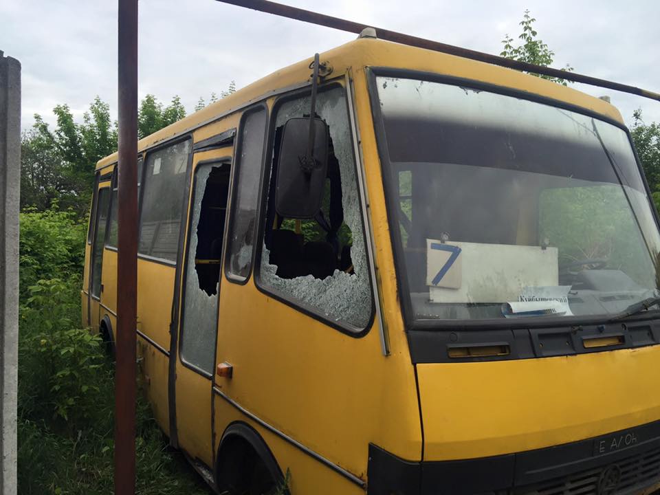 - ул. Альпинистов, 17- прямое попадание, разбиты два пассажирских автобуса на стоянке возле дома