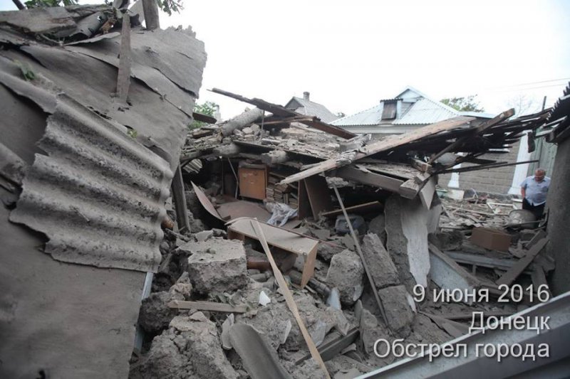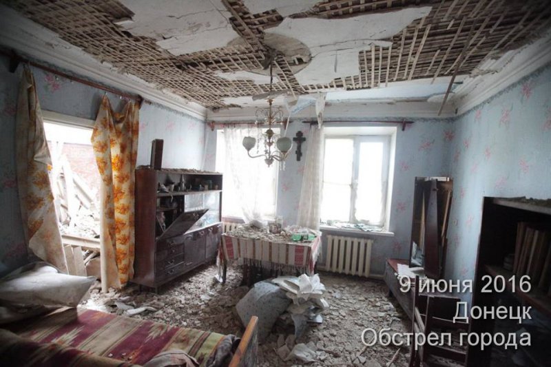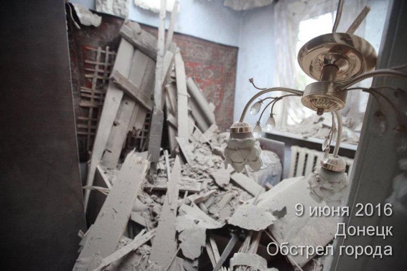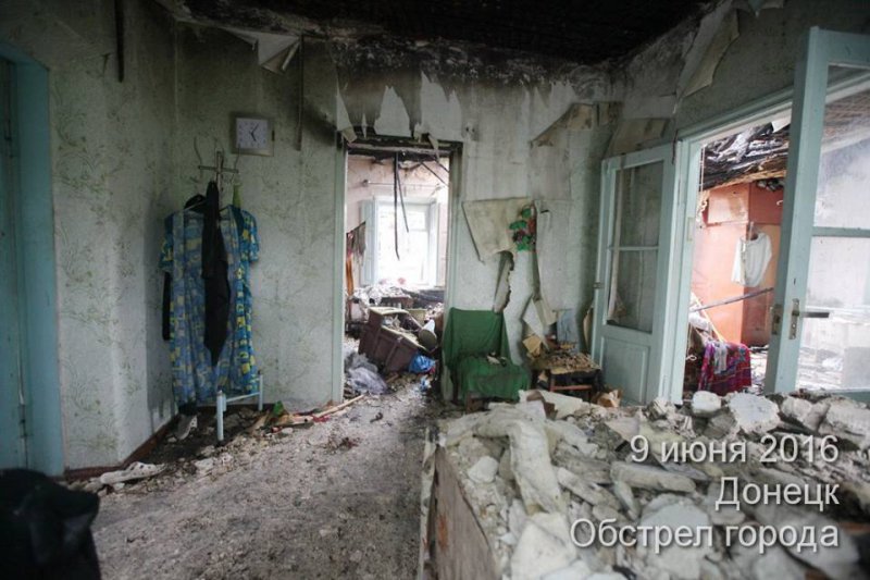 Последствия обстрела Куйбышевского района Донецка. 09.06.16