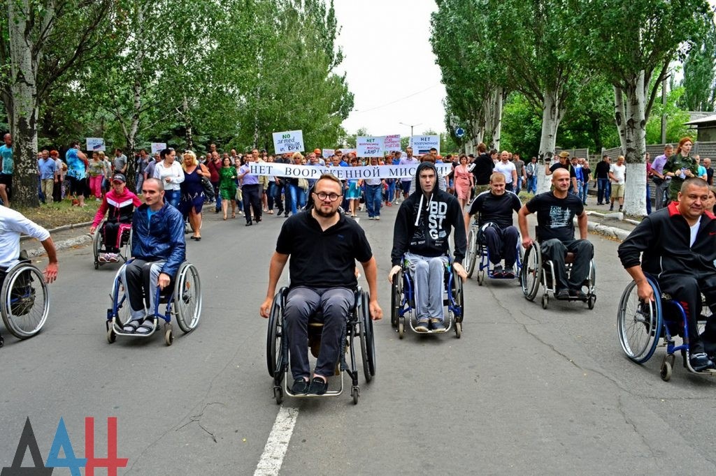 Около 2000 жителей ДНР приняли участие в тренировке по противодействию вторжениям вооруженных миссийЖители ДНР провели сегодня в Шахтерске учения по безоружному противодействию иностранным вооруженным миссиям, которые могут вторгнуться на территорию государства и угрожать безопасности мирного населения. Тренинг прошел в центре города и, по оценке корр. ДАН, собрал около двух тысяч участников.
