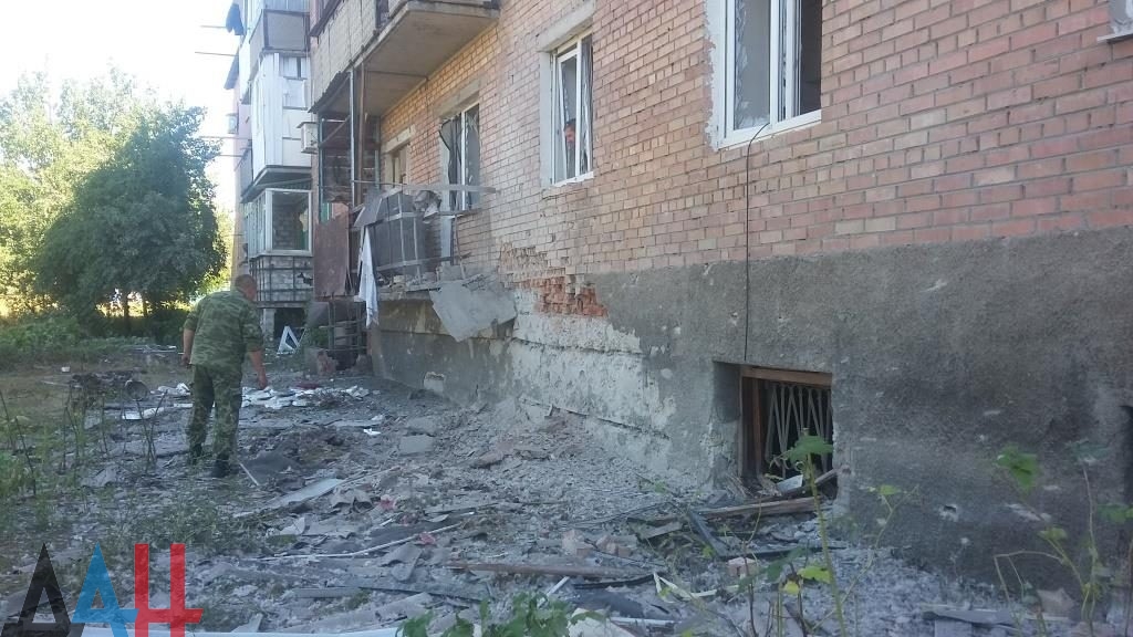 «Многоквартирный трехэтажный дом на улице Гоголя в Ясиноватой поврежден в результате обстрела из орудий калибром 122 мм», — сказал собеседник агентства. Он добавил, что огонь велся с позиций ВСУ в районе оккупированного села Каменка.