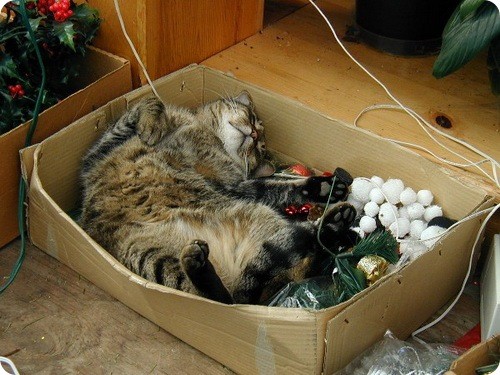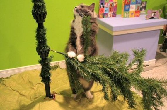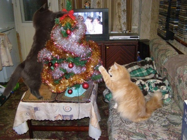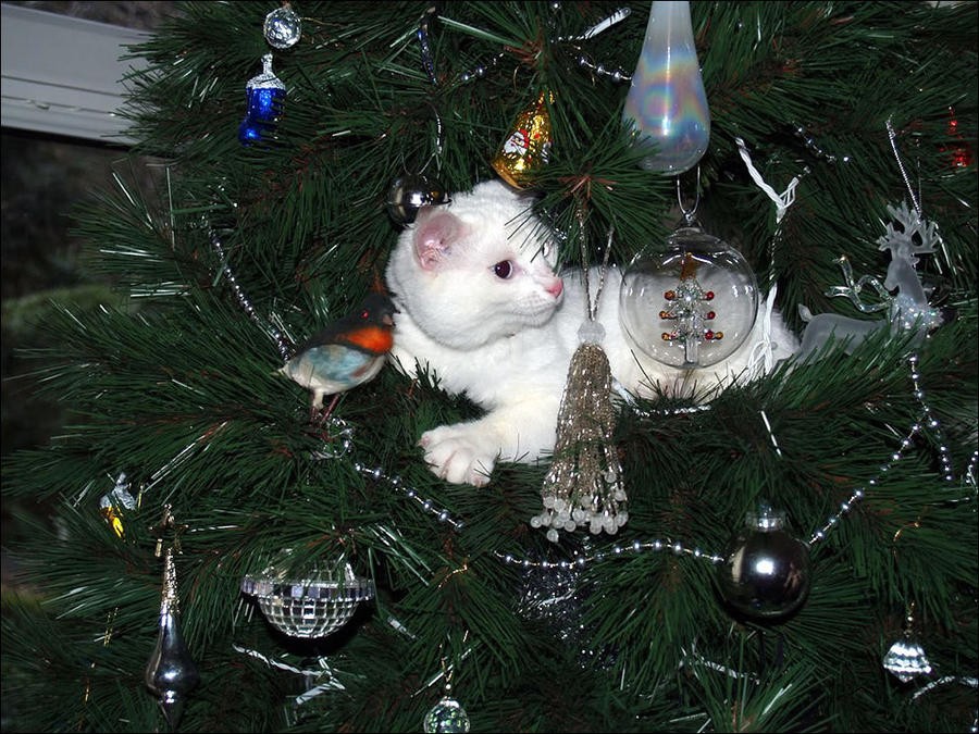 Непростые отношения кошки и новогодней елки