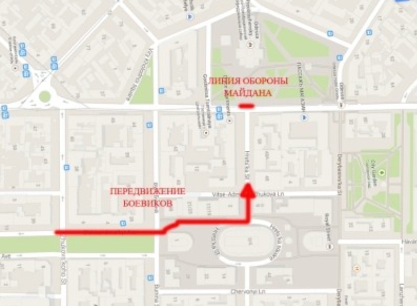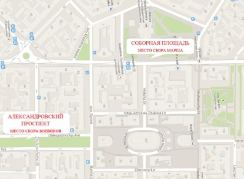 Футбольные фанаты собирались на Соборной площади. Боевики в окружении милиции собирались в то же время в нескольких кварталах рядом - на Александровском проспекте.