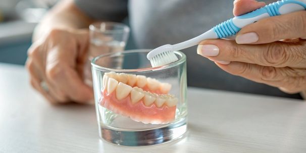 Для глубокой очистки протезов применяются специальные растворы для замачивания. Они растворяют налет и остатки пищи, а также обладают антибактериальным эффектом.