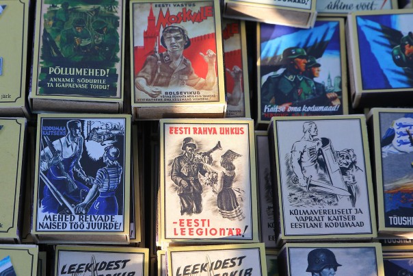 В выходной день ярмарка на натовской базе открылась чуть ли не на рассвете. И "расцвела" она там так, что мало не казалось. Вот вам совершенно официально выпущенные для открытой продажи спички с этикетками в виде сильно уменьшенных копий с нацистских агитационных плакатов на эстонском языке времен Великой Отечественной.