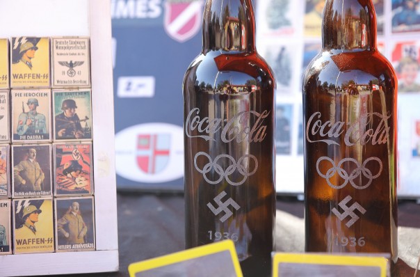 На другом столике можно было найти разную продукцию компании Coca-Cola - гитлеровского времени. Тут были даже раритетные бутылки из-под газированного напитка, которые продавались в Германии на Олимпийских играх 1936 года: там американская компания была спонсором. К слову, после игр Coca-Cola из страны не ушла, а построила немало заводов и достаточно прочно связала себя с гитлеровской Германией, и эта продукция стала там чуть ли не национальным напитком номер один.