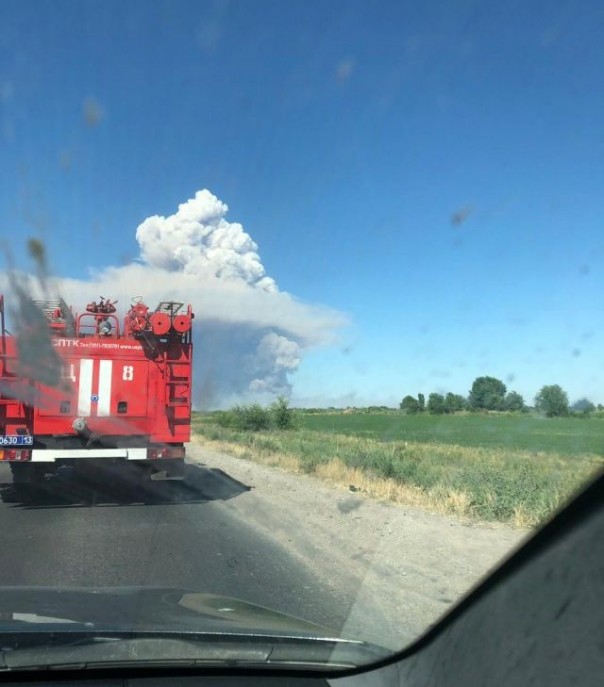 Отмечается, что на складе с боеприпасами начался пожар, вызвавший взрывы. Судя по видеозаписям очевидцев, взрыв был не один. В городе Арысь введена чрезвычайна ситуация. Люди сами начали выезжать из города. Всего в нем проживает около 45 тысяч человек.